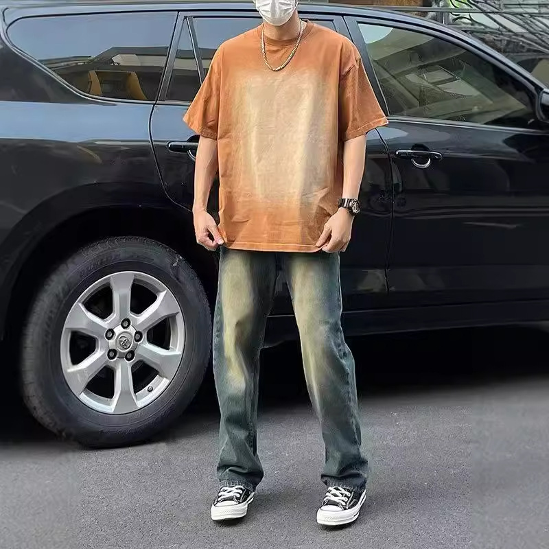 アメリカの高街のレトロなストレートが痩せているジーンズの男性のゆるいファッションブランドのカジュアルな古い水洗いのワイドパンツを作る