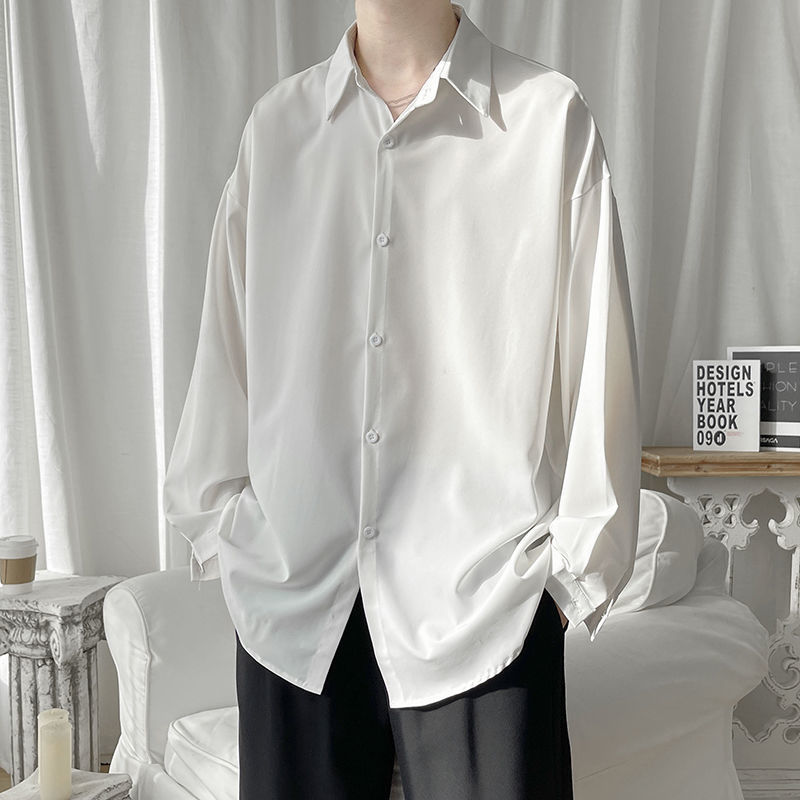 香港風のシャツの男の黒いごろつきは春と秋のファッションの長袖がゆったりしています。