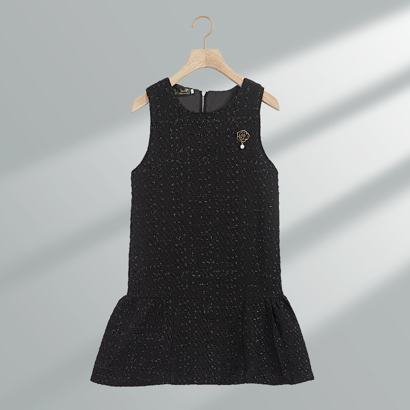 9050 Xiaoxiangfeng ベストドレス女性の春と秋のハイエンド気質スリムロングスカートノースリーブ黒ベスト