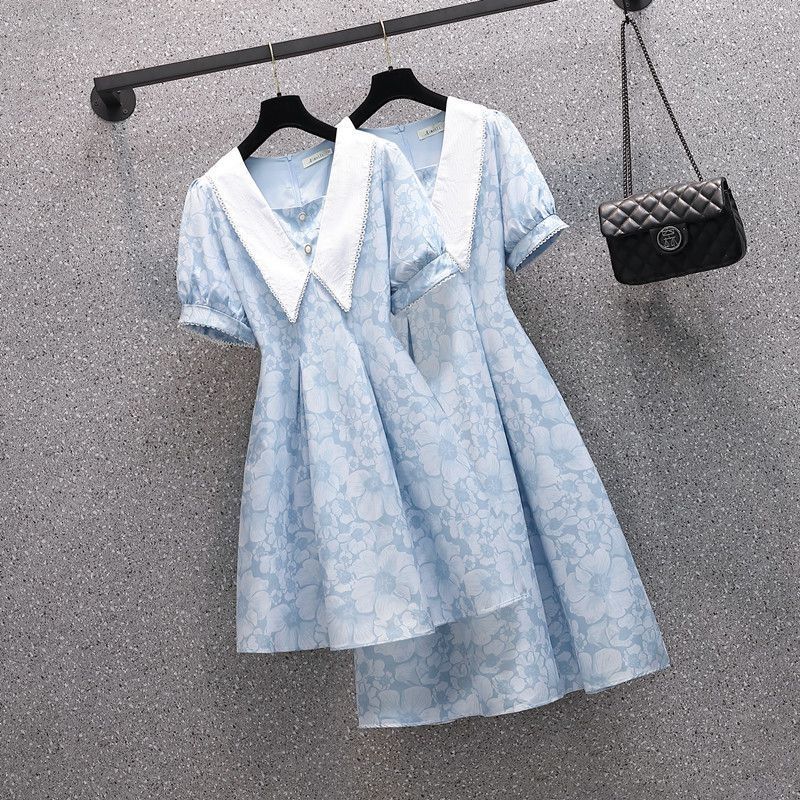 8851大きいサイズの婦人服の新型韓国版はお腹を遮ってやせている太っている妹が街の超仙の洋風の子供の襟のワンピースを揚げます。