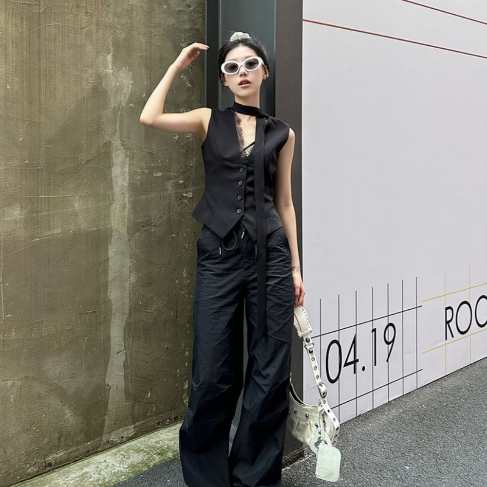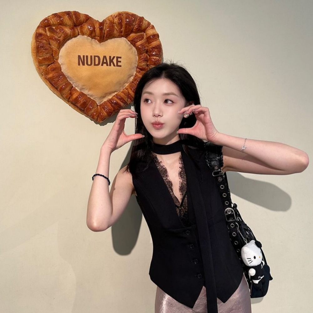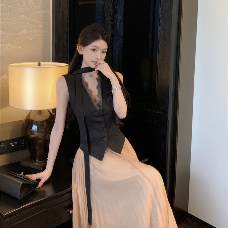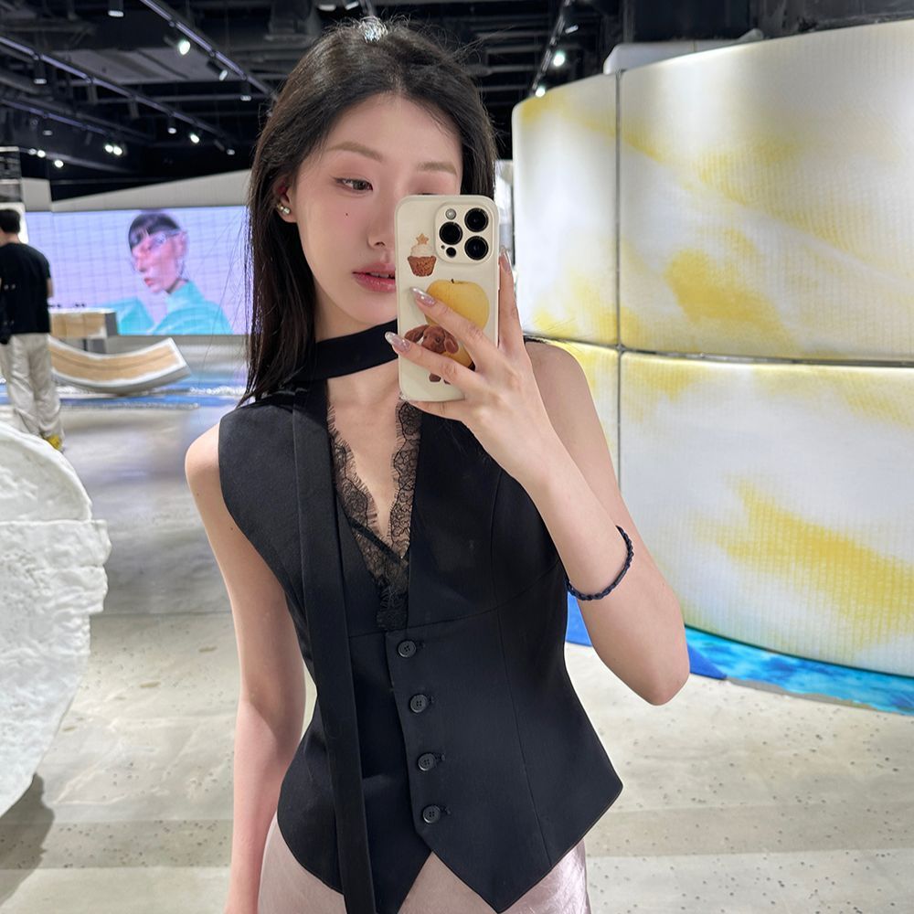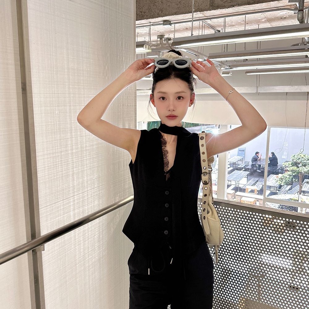 ネットセレブと同じスタイルの2025年新作夏ニッチスタイルレース無地気質セレブスーツベスト痩身女性用