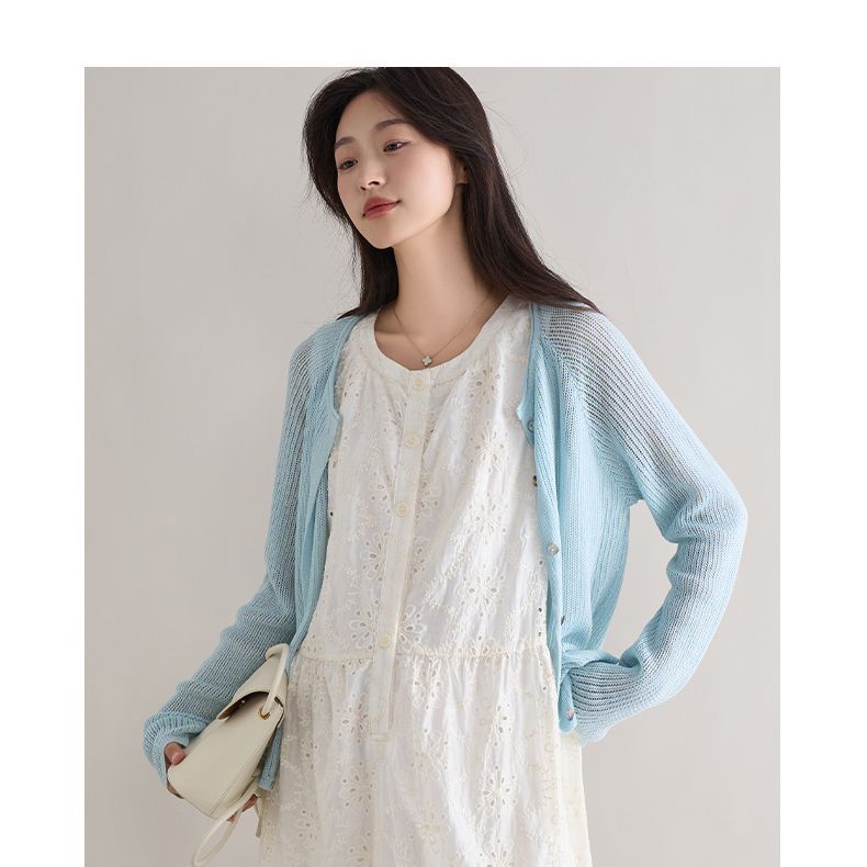 プラスサイズの女性のレトロ中空日焼け止めスーツカラーシャツ女性の夏ファットmm 150kg ゆったり、スリムで多用途