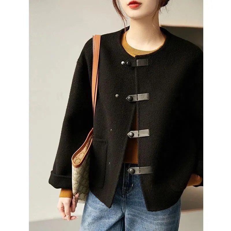 9021 ヤシリーズルーズ気質スリムショートコート 2025 女性の秋と冬の新しい無地ウールコート