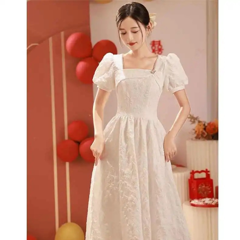 9299 ハイエンドの軽い高級フレンチホワイトの婚約ドレス、小柄な女性向け、夏のパーティーに日常着として着用できます