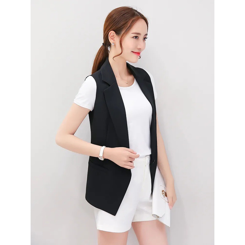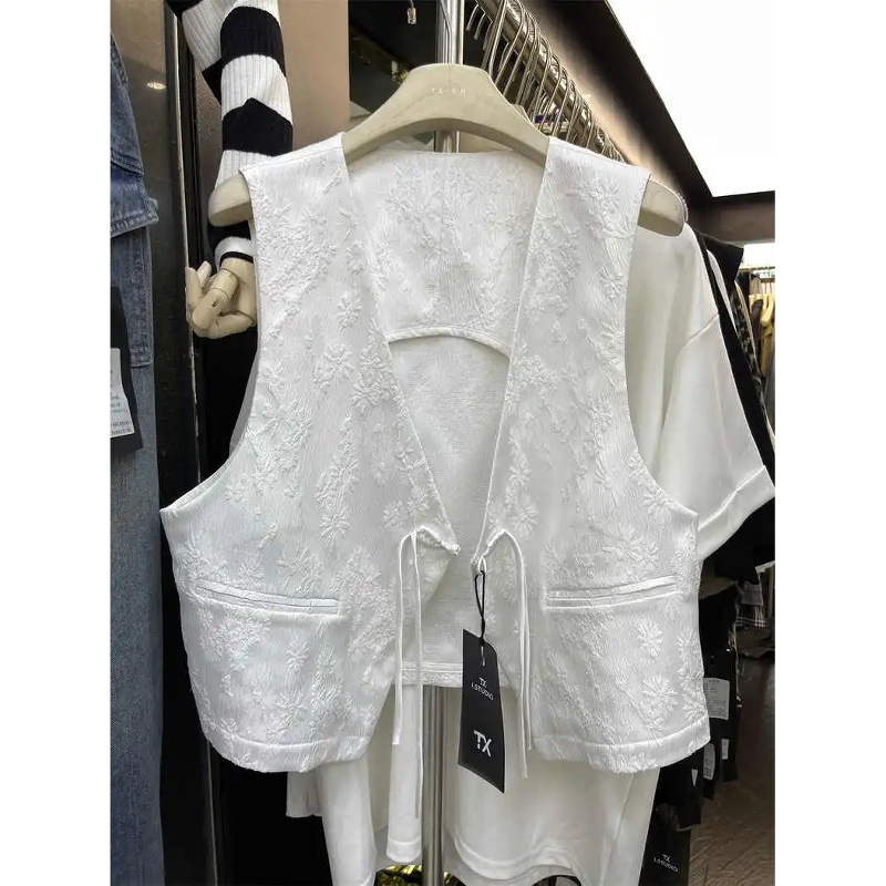 9119スーツのベストの女性のコート2024夏の薄いタイプの小さい背のノースリーブの肩のベストは白いスーツのベストを挟みます。
