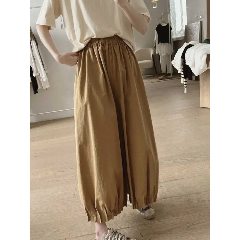 9075 # 女性のためのハイウエストワイドレッグパンツ春と夏の新しいルーズ大きいサイズスリム弾性バンドプリーツレトロカジュアル