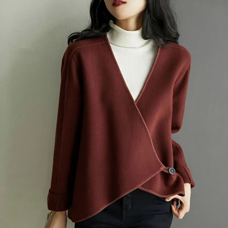 8998 不規則なウールジャケット女性のための 2024 春と秋の新しいルーズでスリムなラップスタイル長袖 V ネックカジュアルトップ