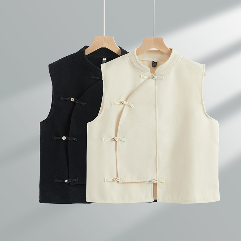 8910 外国風 2024 秋冬新作中国風レトロスタンドカラーバックルルーズベストエスニックスタイルウールベスト