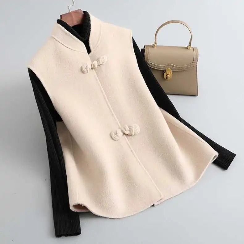9026 新中国風スタンドカラーボタンウール気質ベストベスト女性のための 2023 秋と冬の新しいスタイルベストノースリーブチョッキ