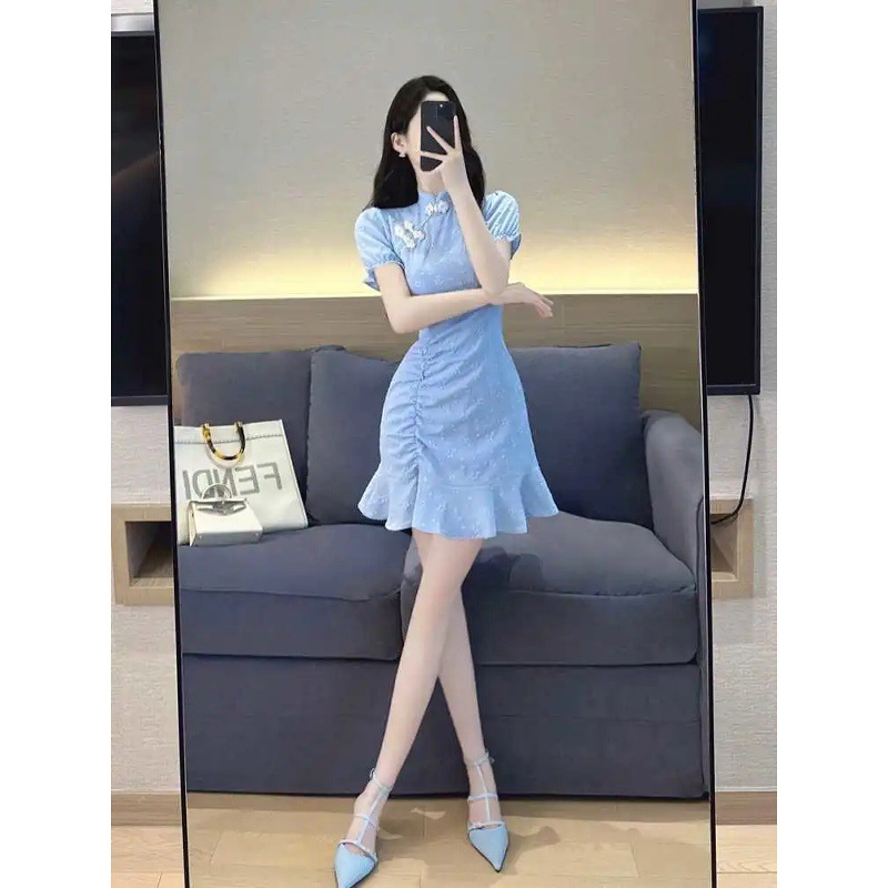 9263 夏の女性の新しい 2024 新しい中国風の中華民国スタイルの改良版チャイナドレス気質小柄なドレストレンド