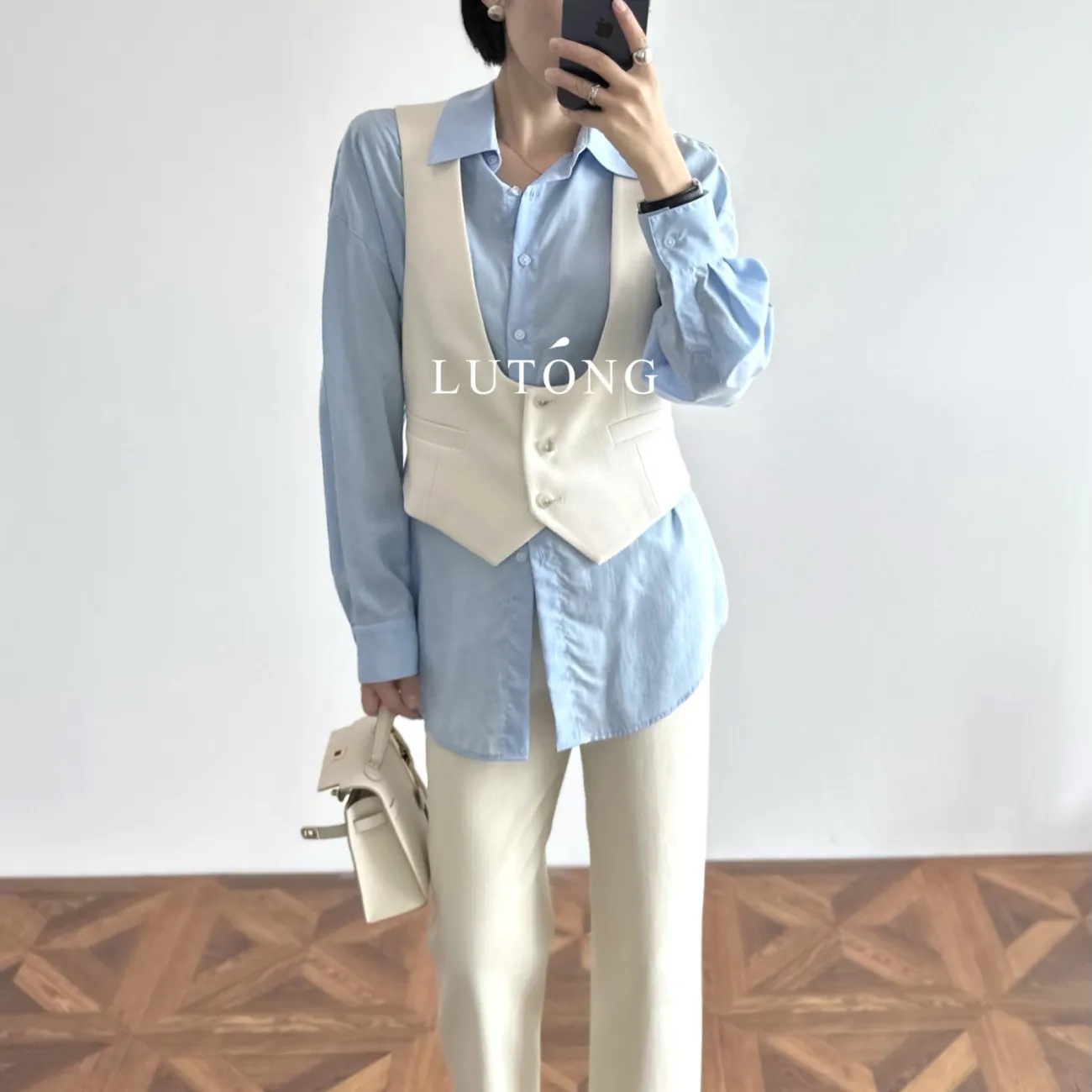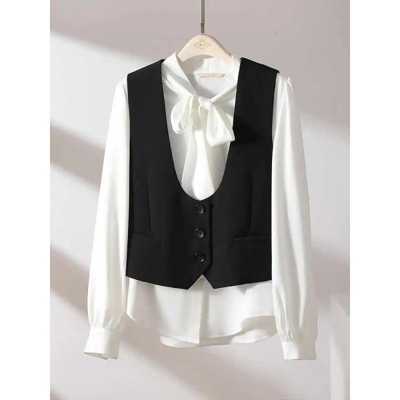 92392024 春夏新作トップスノースリーブレイヤードベストベストUネックショートスーツベストベスト