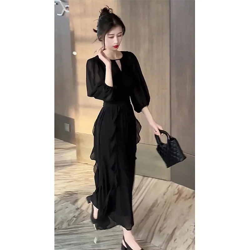 9275 絶妙な婦人服 2024 夏の新作ヨーロッパスタイルのハイエンドデザインの小さな香りのウエストが美しい黒のドレス