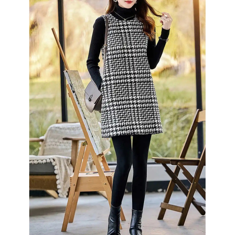 9225 千鳥格子ウールドレス女性の秋冬気質 2024 新しいハイエンドノースリーブボトムベストドレス