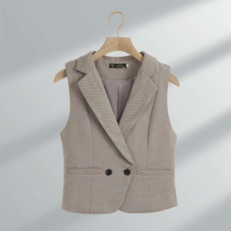 9176 スリムショートスーツ襟ウールベスト女性のための春と秋 2024 新しいヘリンボーンレイヤード多用途ベストバック