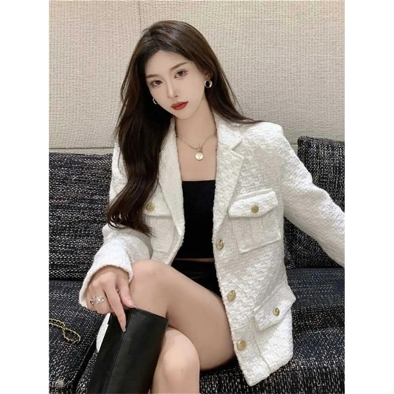 9237 ホワイトスモールフレグランスブレザー女性のための春と秋の新作 2024 韓国スタイルカジュアルファッションハイエンド気質セレブ