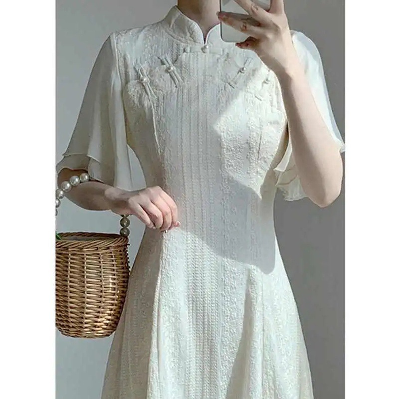 9263 新しい中国風の女性の国民風半袖ドレス女性の夏のハイエンドウエスト小柄なチャイナドレス