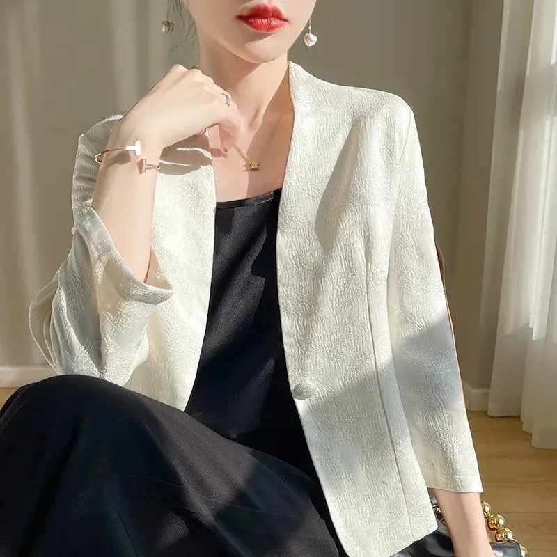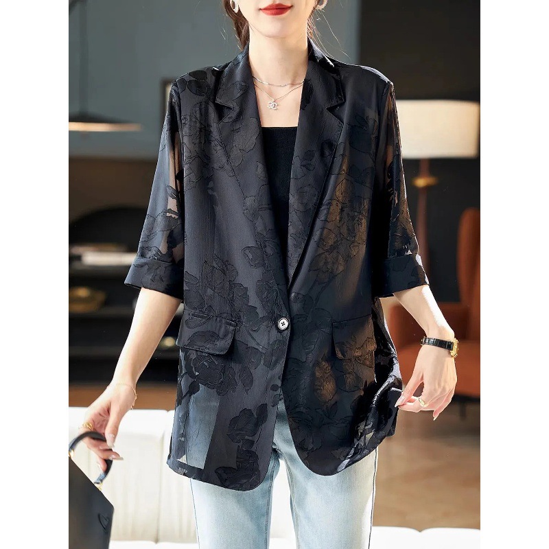 9290国風ジャカード日焼け止めスーツの女性の中長型2024年春夏の大きいサイズのゆるいカジュアルな薄いタイプ