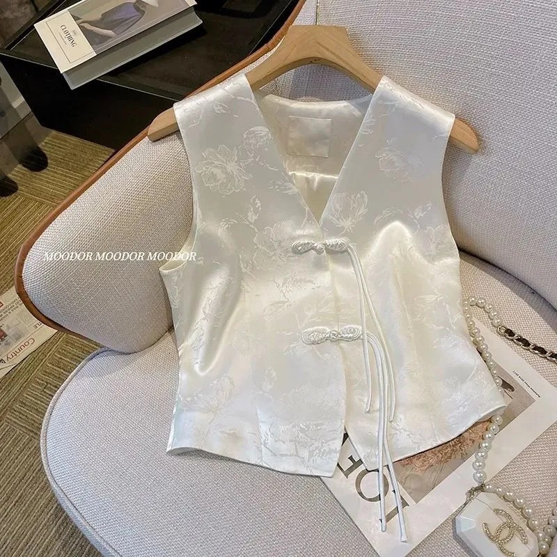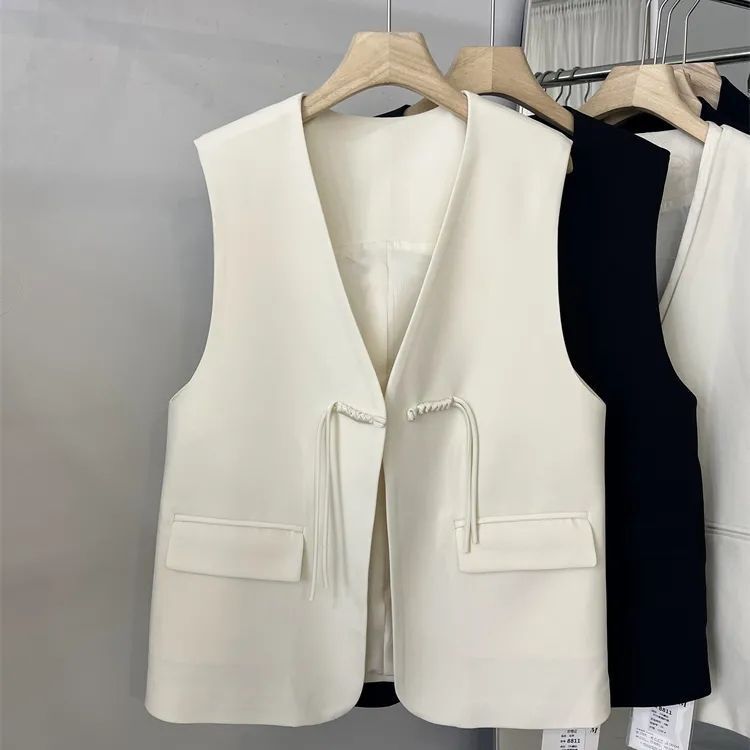 新しい中国風のスーツベスト女性のための春と夏の新しいレトロな中国風のワンボタン V ネックショートベストトップ