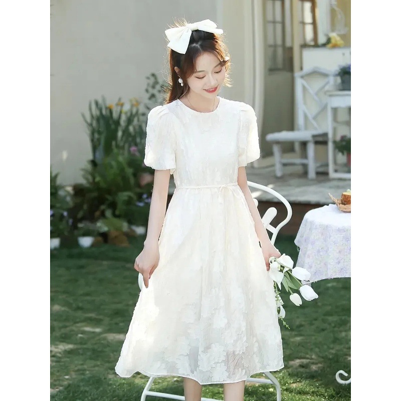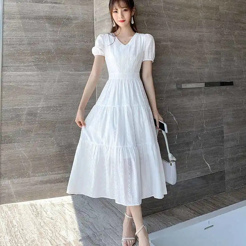 9092 ホワイトドレス夏の新しいフランスの女性のニッチ初恋スーパーフェアリー気質スリムミドル丈スカート