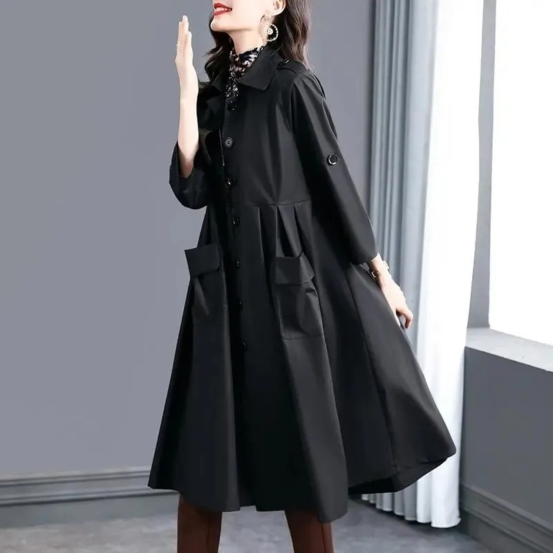 8963 超ロングウインドブレーカー女性足首まで春と秋 2024 新しい韓国スタイルルーズミッドレングス膝上背の高い人