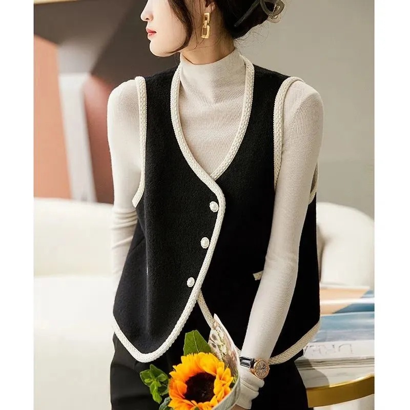 89832024 秋冬の新しいスタイルファッショナブルな小さな香りのウールのベスト女性のノースリーブチョッキジャケット多用途トレンド