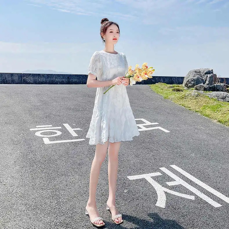 9267ワンピース女性夏2024新型フランス気質白色半袖ゆるい痩せ小柄優しい風