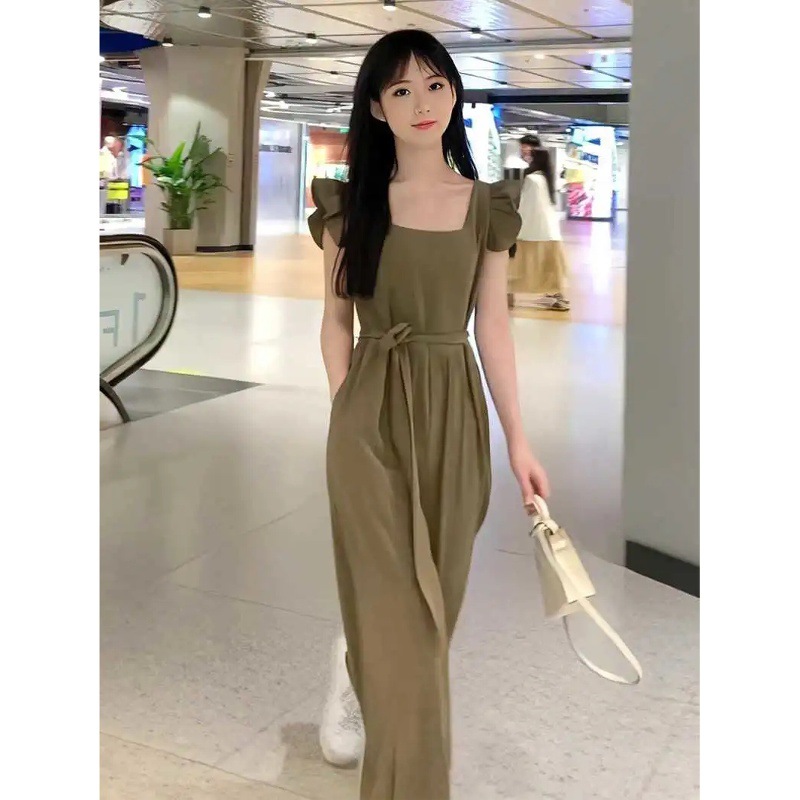 9132キクラゲのハスの葉の辺のかわいい子供の袖の2024夏の新型のストラップは腰の連体のズボンの高い腰の広い足の服を収めます。