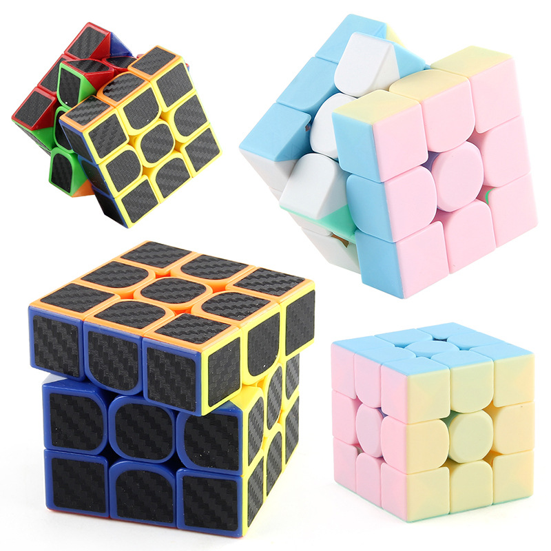 クロスボーダー外売マカロン色三階ルービックキューブ玩具炭素繊維三階ルービックキューブ滑らかな回転ルービックキューブのプラスチック包装