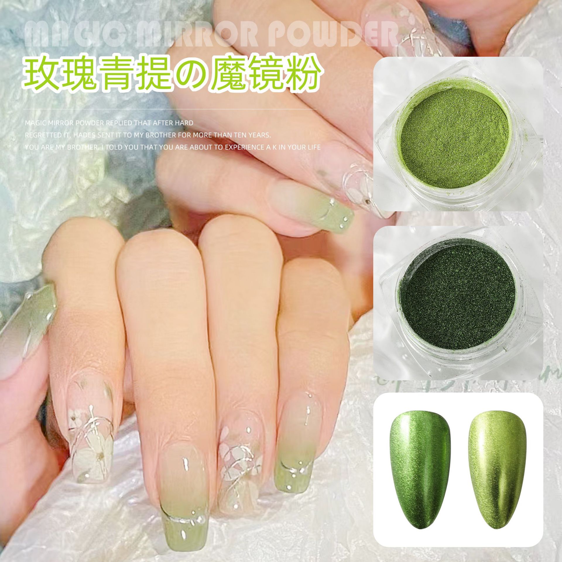 ネット赤爆金緑魔鏡粉薔薇青提リンゴ緑鏡小麦粉夏小清新ネイルフラッシュ卸売り