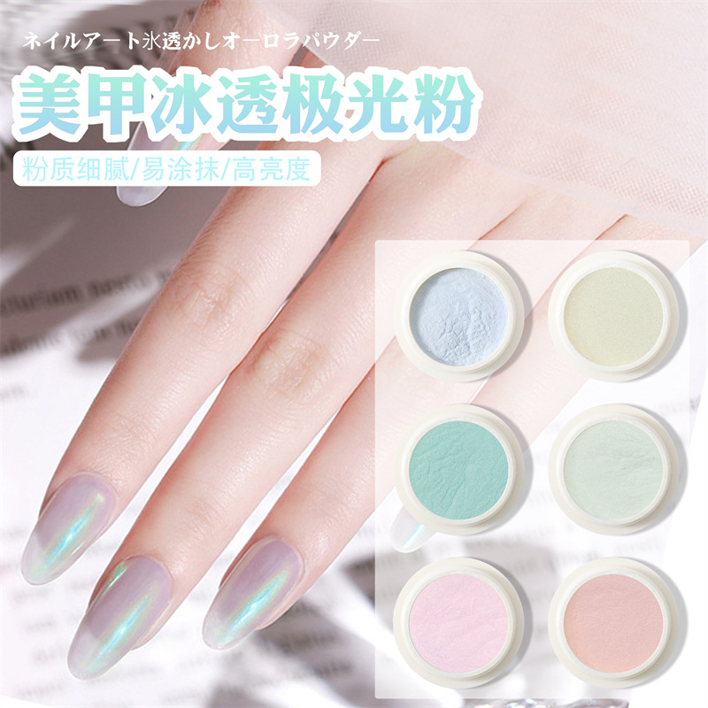 国境を越えて氷透裸色粉極光粉ネット赤ネイルアート幻彩人魚鏡小麦粉魔鏡粉6色セット