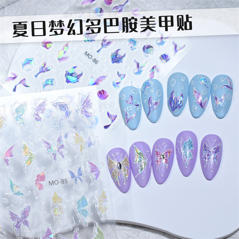 ネットの赤いレリーフのレーザーの極光の液体のまぶしい色彩の蝶のネイルシールの夏の夢幻の海洋のクラゲの爪のステッカー