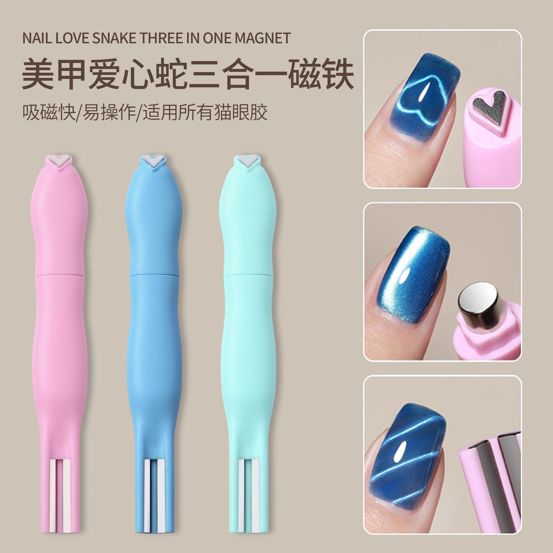 強力なラブキャットアイマグネットハート型スネークパターンマニキュアマグネットスリーインワン取り外し可能な多機能マニキュアマグネット