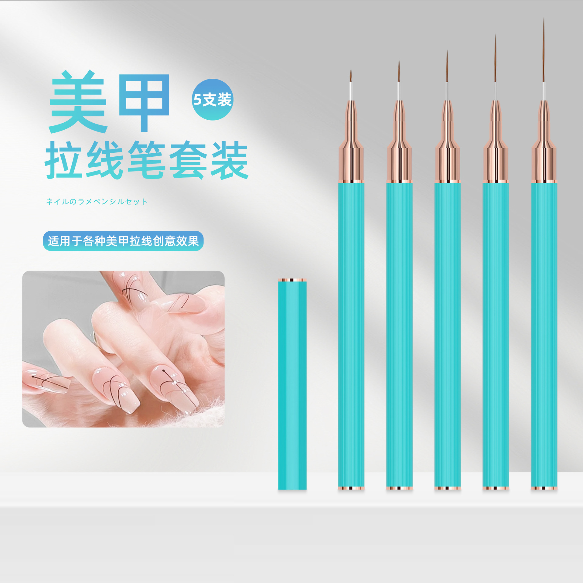 国境を越えて専用の5本の針管ネイルペン金属縞棒ネイルカラーペン画花ペン線ペン