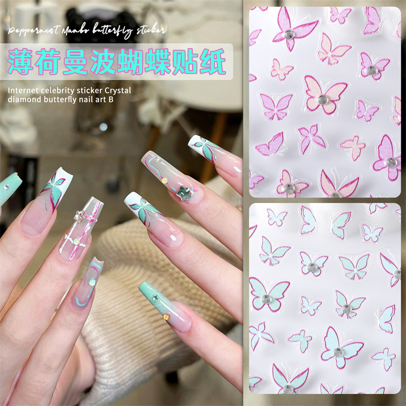 ネット赤爆金結晶ドリル蝶ネイルシールミントマンボピンク彩色浮き彫り蝶爪シールドリル付き