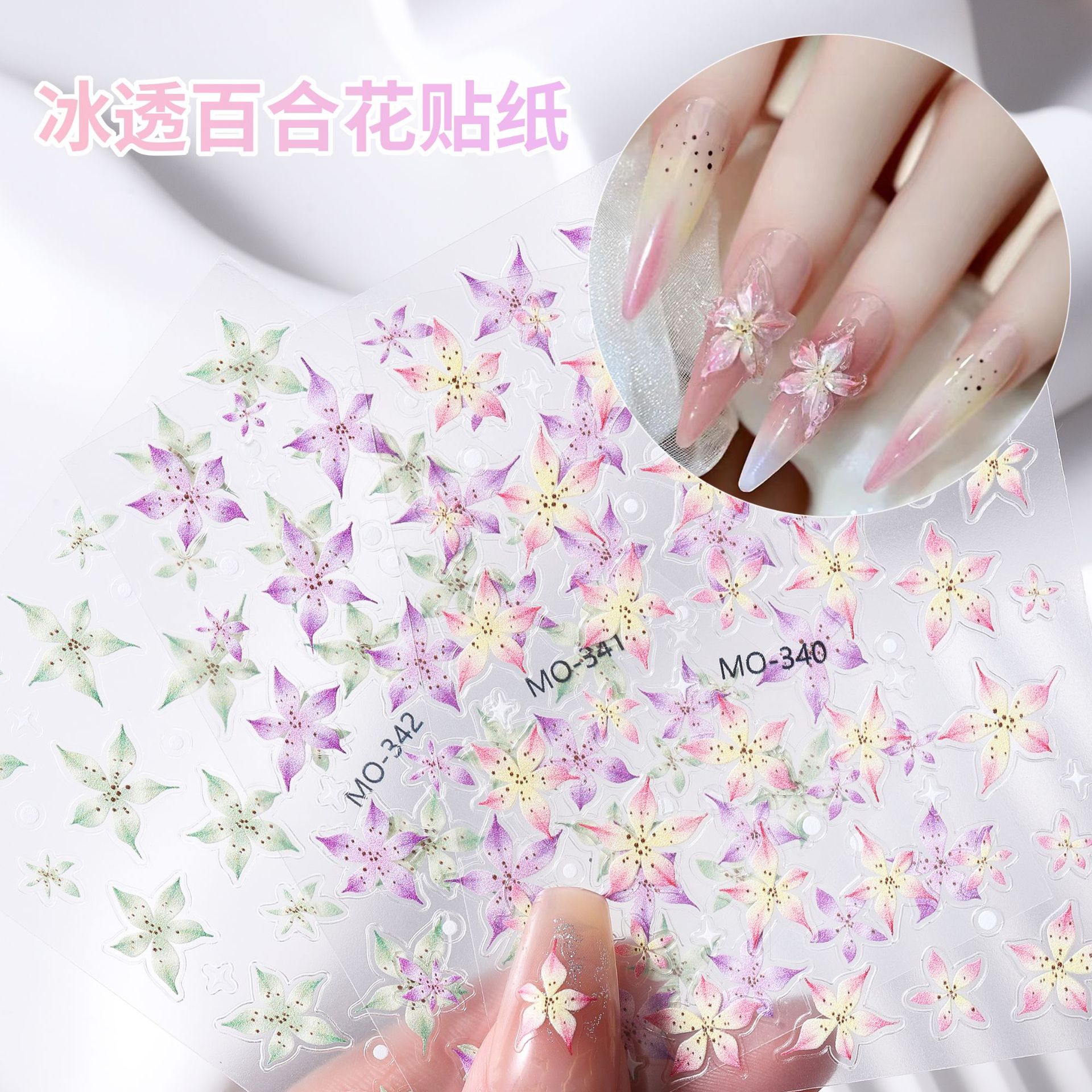 震え音小紅本爆型氷透百合花ネイルシール立体レリーフ氷花薄靭爪貼りアクセサリー