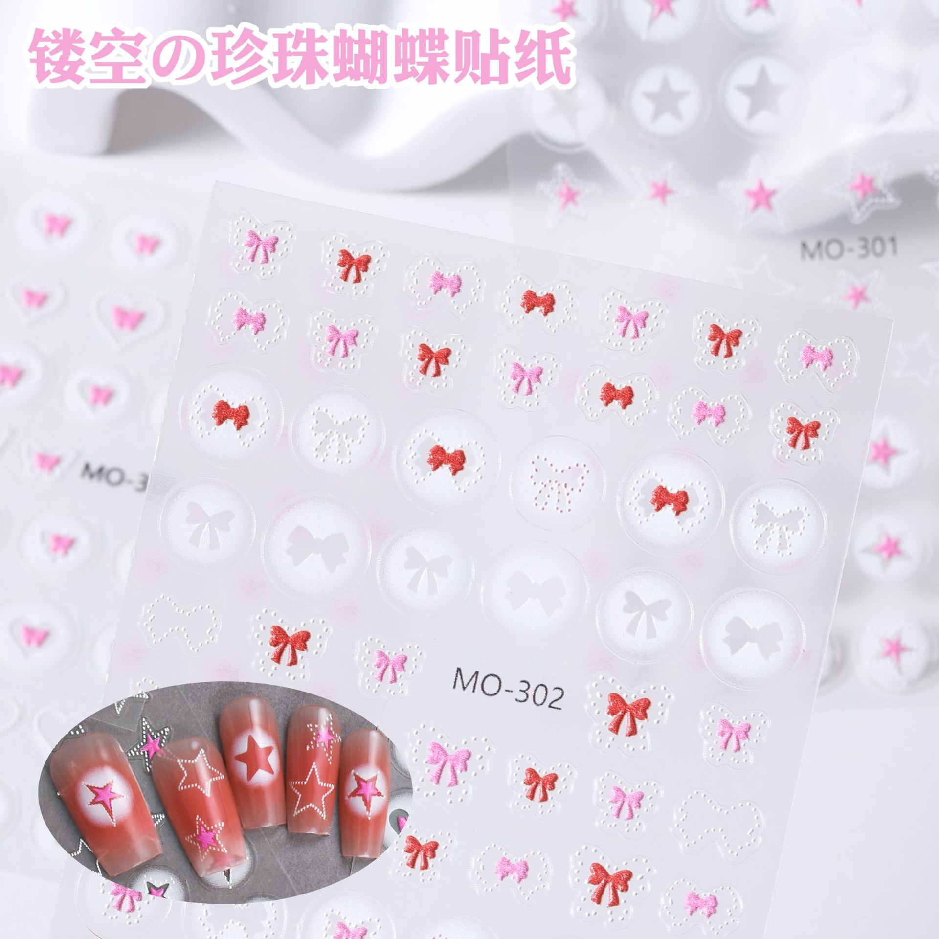 ネイル透かし彫りレリーフ蝶シール愛真珠五角星蝶結びアップリケ