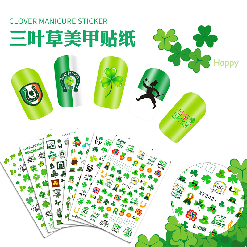 クロスボーダー新品ラッキークローバークローバーネイルステッカーセットアイリッシュ爪ステッカー10枚1セット