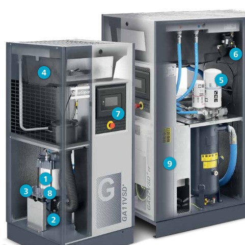 GA 7-110 VSD (7-110 kW/10-150 hp) アトラス噴射スクリュー圧縮機