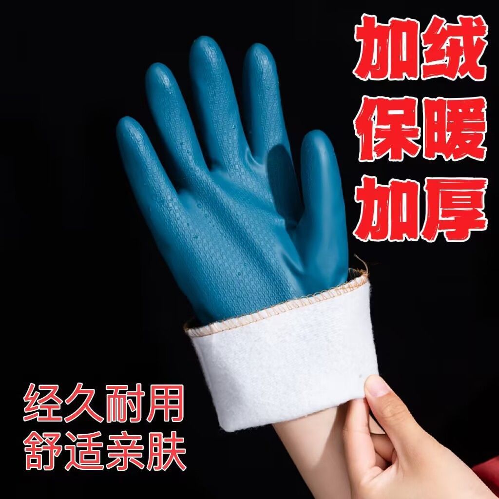台所の耐摩耗性家事の皿洗い防凍耐熱耐摩耗性ラテックス手袋滑り止め厚さとベルベットの一体パイル超厚さ