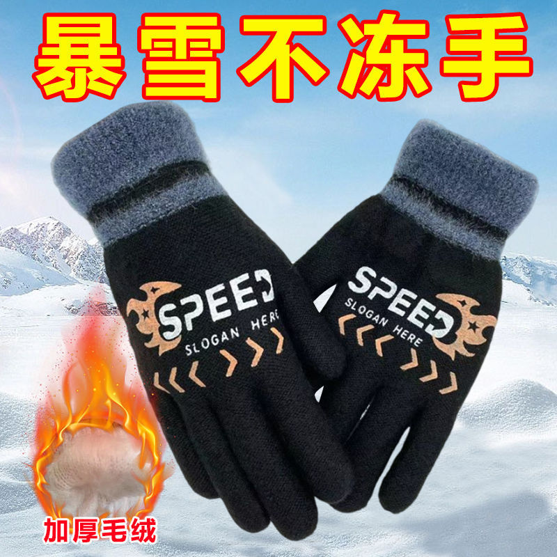 冬の男性女性は厚いベルベットの二重手袋のニット手袋を着て屋外の保温ニット手袋を着ている