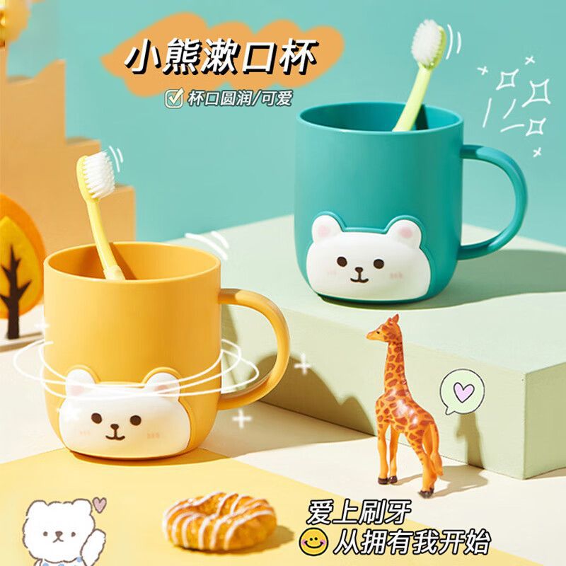 シンプルな子供のうがいのコップの赤ちゃんは歯のコップのアイデアの漫画のかわいい歯のかめの家庭用のプラスチックの熊を洗ってコップを洗います。