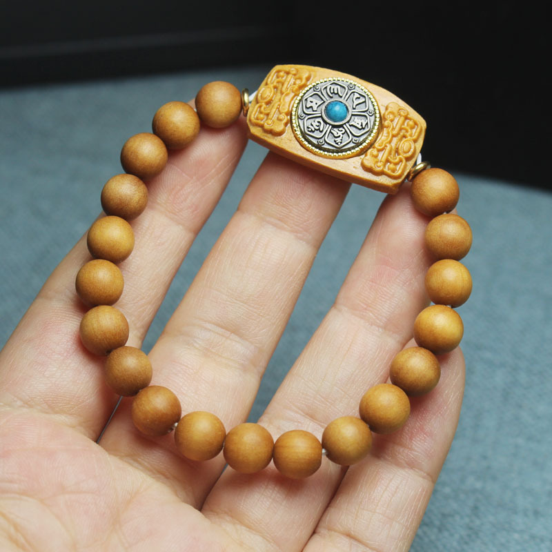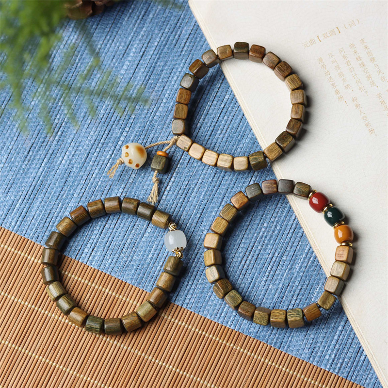 メーカー卸売り金糸楠陰沈木手串緑料金糸楠木仏珠カップルのブレスレット文遊び手串