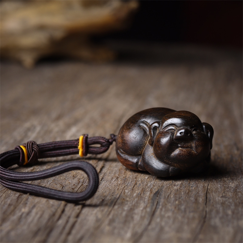 天然沈香木創意国風十二生肖豚のハンドルはカップルの金を持っています。