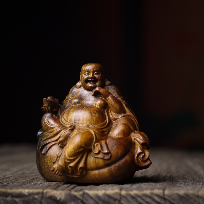 沈香木彫刻元宝笑仏木彫刻創意人物自動車置物大腹弥勒仏像車載工芸礼