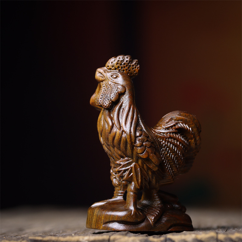沈香木雕金鶏置物実木十二生肖大雄鶏工芸品純木雄鶏装飾品