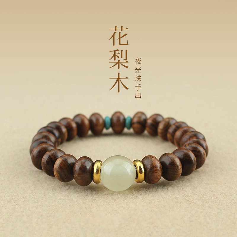 復古風文芸花梨檀木夜光珠ブレスレット仏珠手串檀香女創意個性カップルアクセサリー