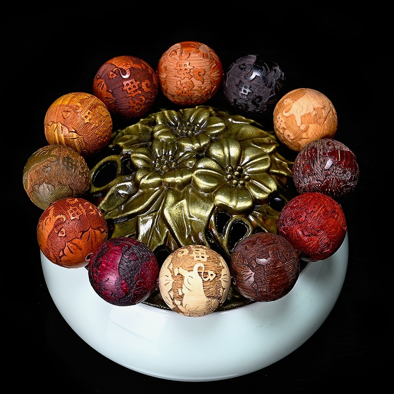 天然原木多宝珠手串精工彫刻牛転乾坤黒檀花梨男女カップルのブレスレット卸売り