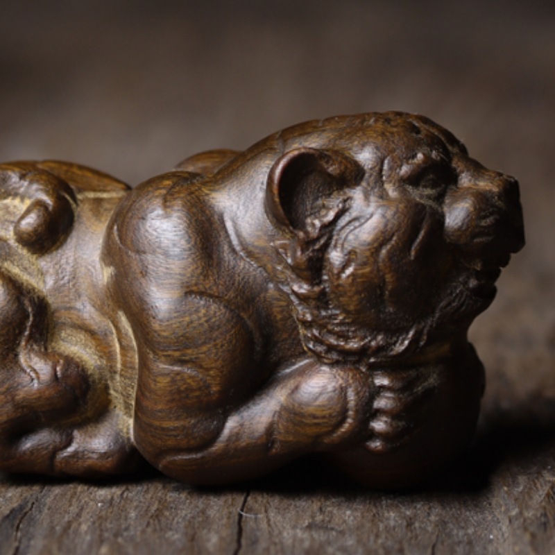 天然の沈香木の手作りの精密彫刻の虎の取っ手の件の実木の彫刻の自動車の掛け物の文は装飾品の工芸品を遊びます。