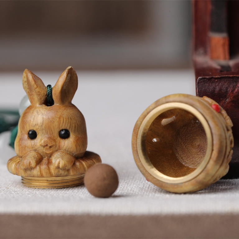 緑檀木彫りのレトロな透かし彫りの団欒のウサギの香嚢は鍵を掛けて携帯電話のチェーンを掛けて自動車のペンダントを包んで漢服を配合します。