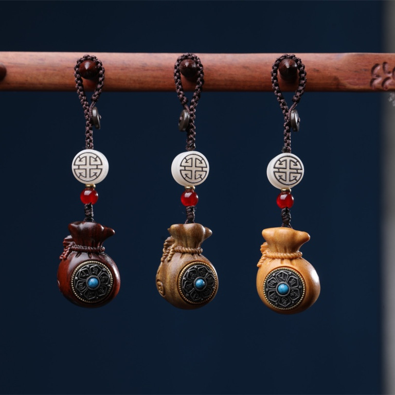 緑檀紫檀のお金の袋の携帯電話のペンダントは代々福袋のキーホルダーのアイデアがあります。